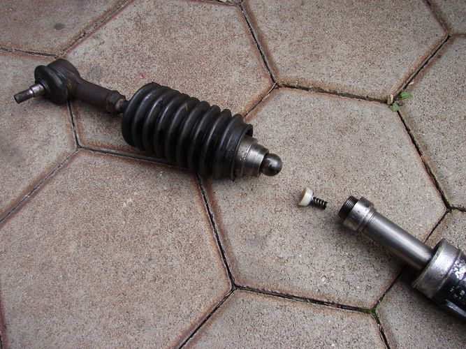 Das einzig gröbere Problem war ein Spiel in der Lenkung, wenn man das rechte Vorderrad bewegt. Drum wollte ich gestern das Lenkgetriebe ausbauen. Hab das vorher noch nie gemacht. Entweder war ich zu blöd dazu, oder mir fehlte der richtige Knoff-Hoff-Trick.