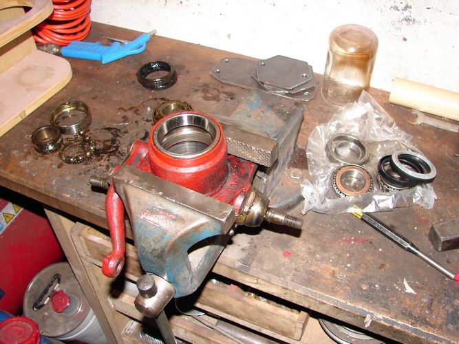 Drum hab ich letztendlich dann auch noch das Radlager getauscht. Vorher waren Kugellager drin, jetzt hab ich Timken Schrägrollenlager eingebaut.